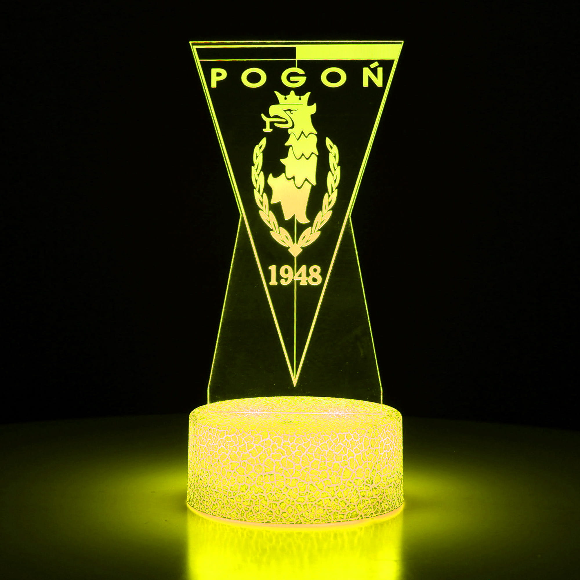 Lampka 3D LED z herbem Pogoni Szczecin to wyjątkowa dekoracja i pomysłowy prezent dla każdego kibica Dumy Pomorza. Dzięki technologii 3D Illusion, herb wygląda jak zawieszony w powietrzu i rozświetla się w 16 kolorach, sterowanych dotykiem lub pilotem.