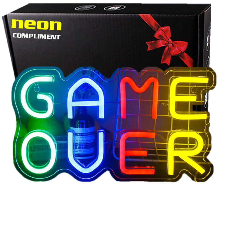 Duży Neon LED USB Lampka na ścianę Napis do pokoju znak neonowy Game Over MULTICOLOR