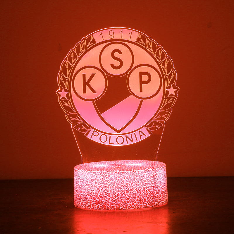 Polonia Warszawa – najstarszy klub stolicy i prawdziwa legenda polskiego futbolu. Ta lampka 3D LED z herbem Polonii i motywem piłki nożnej to wyjątkowy hołd dla barw, które nosisz w sercu.