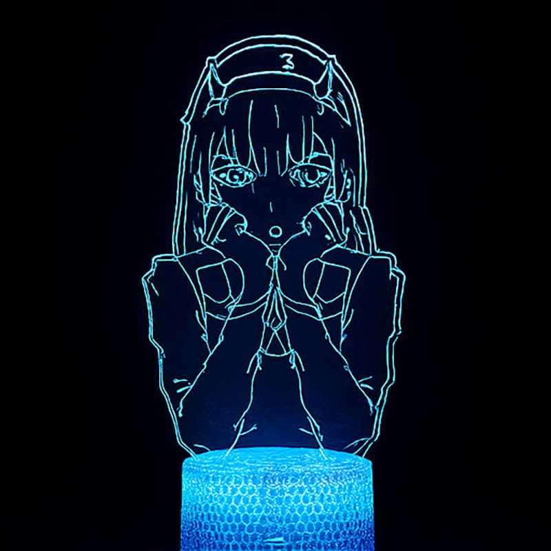 Wyjątkowa lampka nocna 3D LED z wizerunkiem Zero Two, jednej z najbardziej rozpoznawalnych bohaterek anime Darling in the Franxx.