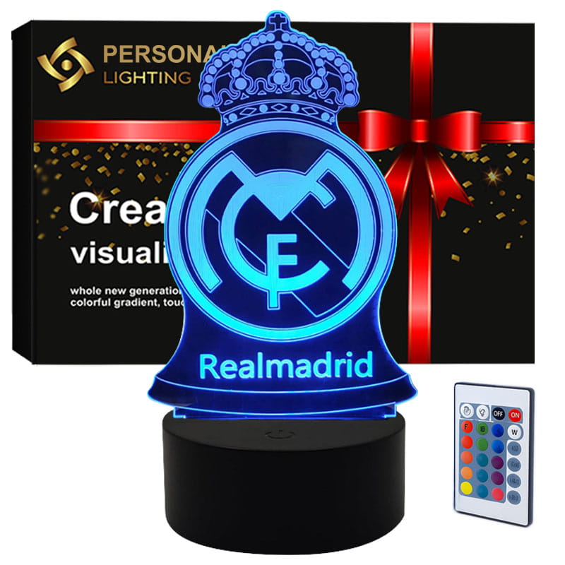 Lampka nocna LED 3D z motywem REAL MADRID to wyjątkowy gadżet dekoracyjny, który świetnie sprawdzi się w pokoju dziecięcym, młodzieżowym lub biurze kibica.