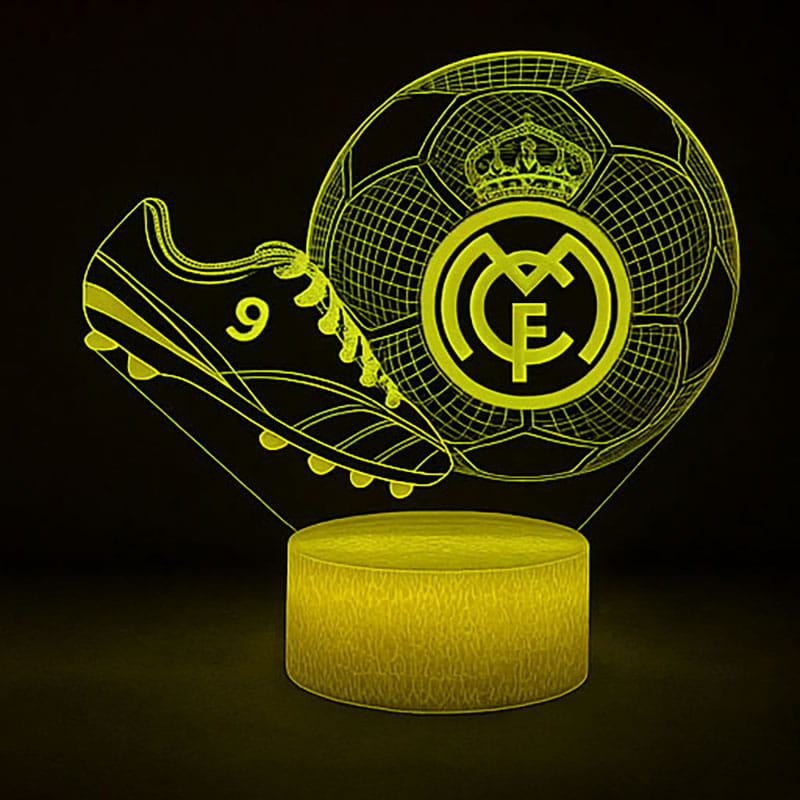 Lampka nocna LED 3D z motywem REAL MADRID to wyjątkowy gadżet dekoracyjny, który świetnie sprawdzi się w pokoju dziecięcym, młodzieżowym lub biurze kibica.