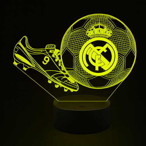 Każda z naszych lamp 3D inspirowanych Realem Madryt to hołd dla jednego z najbardziej utytułowanych klubów piłkarskich w historii. Od herbu z królewską koroną, przez piłkę z emblematem „Los Blancos”, po dynamiczne wizualizacje korków – te wzory tworzą unikalną kolekcję, która rozświetli pokój każdego fana.