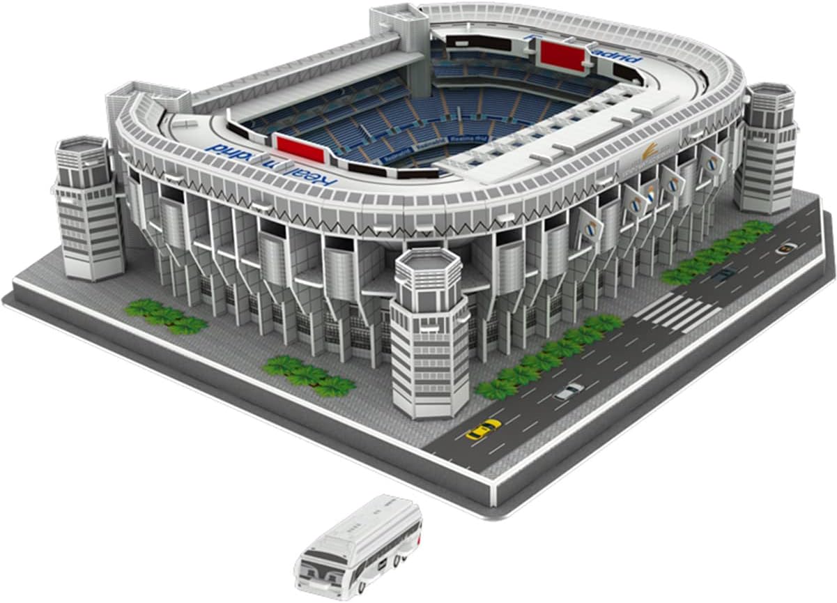 Model 3D stadionu Santiago Bernabéu, domu legendarnego Realu Madryt, to doskonała gratka dla fanów piłki nożnej – niezależnie od wieku. Dzięki 101 precyzyjnie wyciętym elementom możesz odtworzyć realistyczną makietę stadionu, który widział dziesiątki trofeów i tysiące emocjonujących spotkań.
